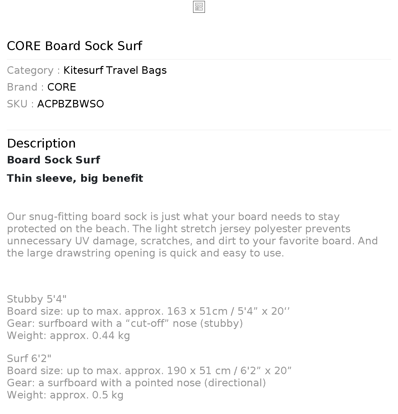 Our snug-fitting board sock is just what your board needs to stay protected on the beach. The light stretch jersey polyester prevents unnecessary UV damage, scratches, and dirt to your favorite board. And the large drawstring opening is quick and easy to use.