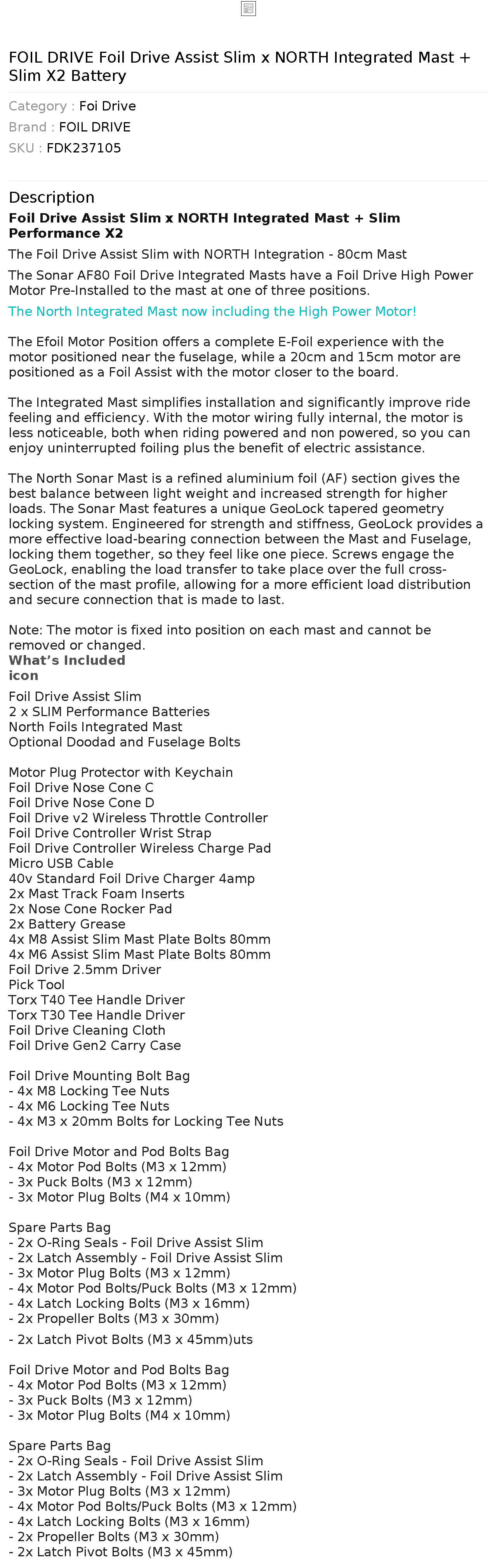 The Foil Drive Assist Slim with NORTH Integration - 80cm Mast