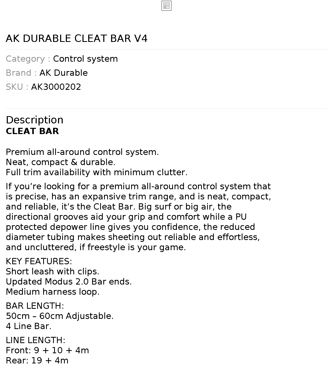 If you’re looking for a premium all-around control system that is precise, has an expansive trim range, and is neat, compact, and reliable, it’s the Cleat Bar. Big surf or big air, the directional grooves aid your grip and comfort while a PU protected depower line gives you confidence, the reduced diameter tubing makes sheeting out reliable and effortless, and uncluttered, if freestyle is your game.