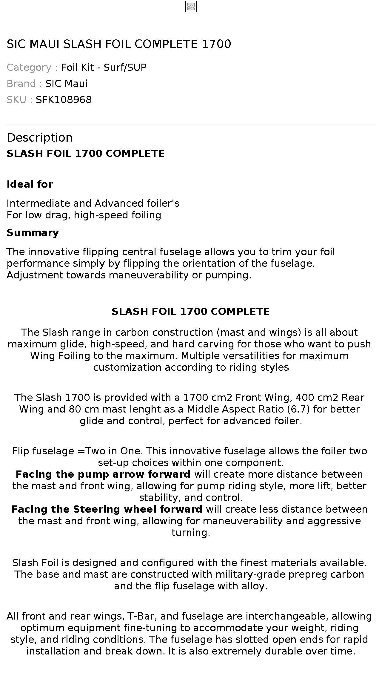 Slash Foil is designed and configured with the finest materials available. The base and mast are constructed with military-grade prepreg carbon and the flip fuselage with alloy.
