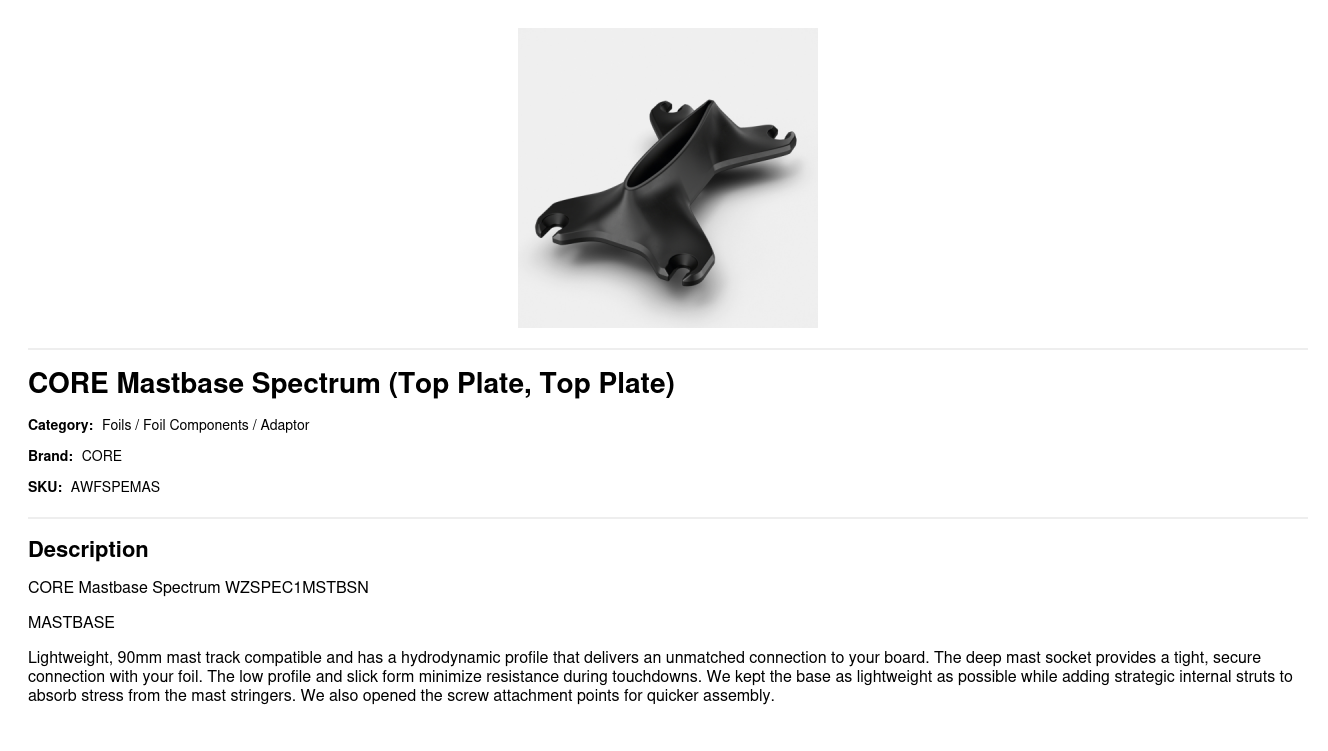 Lightweight, 90mm mast track compatible and has a hydrodynamic profile that delivers an unmatched connection to your board. The deep mast socket provides a tight, secure connection with your foil. The low profile and slick form minimize resistance during touchdowns. We kept the base as lightweight as possible while adding strategic internal struts to absorb stress from the mast stringers. We also opened the screw attachment points for quicker assembly.
