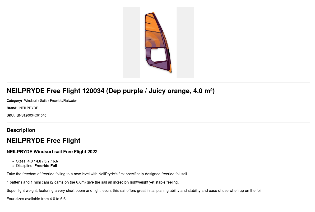 Super light weight, featuring a very short boom and tight leech, this sail offers great initial planing ability and stability and ease of use when up on the foil.