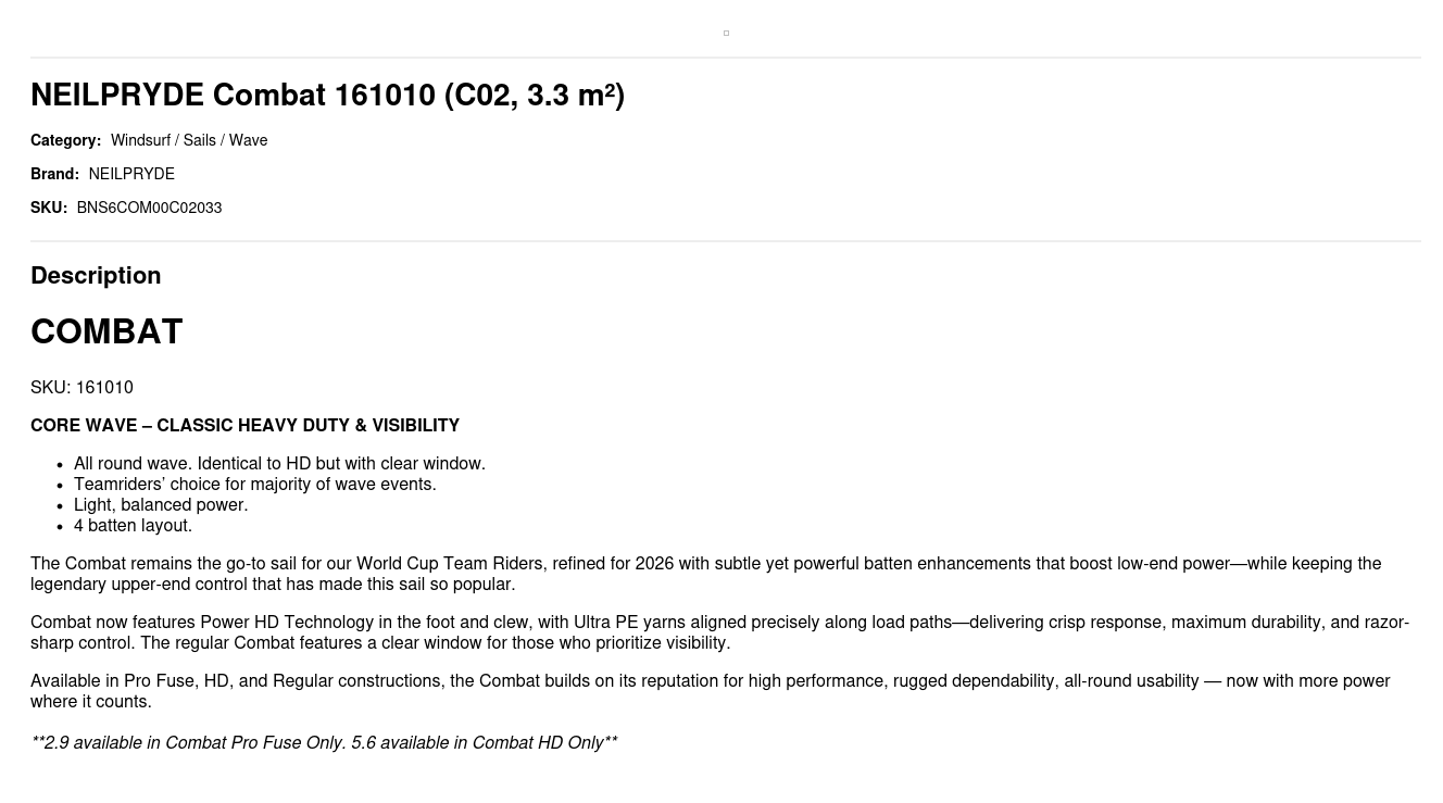 The Combat remains the go-to sail for our World Cup Team Riders, refined for 2026 with subtle yet powerful batten enhancements that boost low-end power—while keeping the legendary upper-end control that has made this sail so popular.