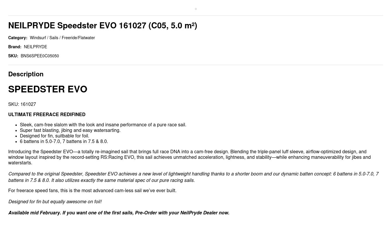 Compared to the original Speedster, Speedster EVO achieves a new level of lightweight handling thanks to a shorter boom and our dynamic batten concept: 6 battens in 5.0-7.0, 7 battens in 7.5 & 8.0. It also utilizes exactly the same material spec of our pure racing sails.