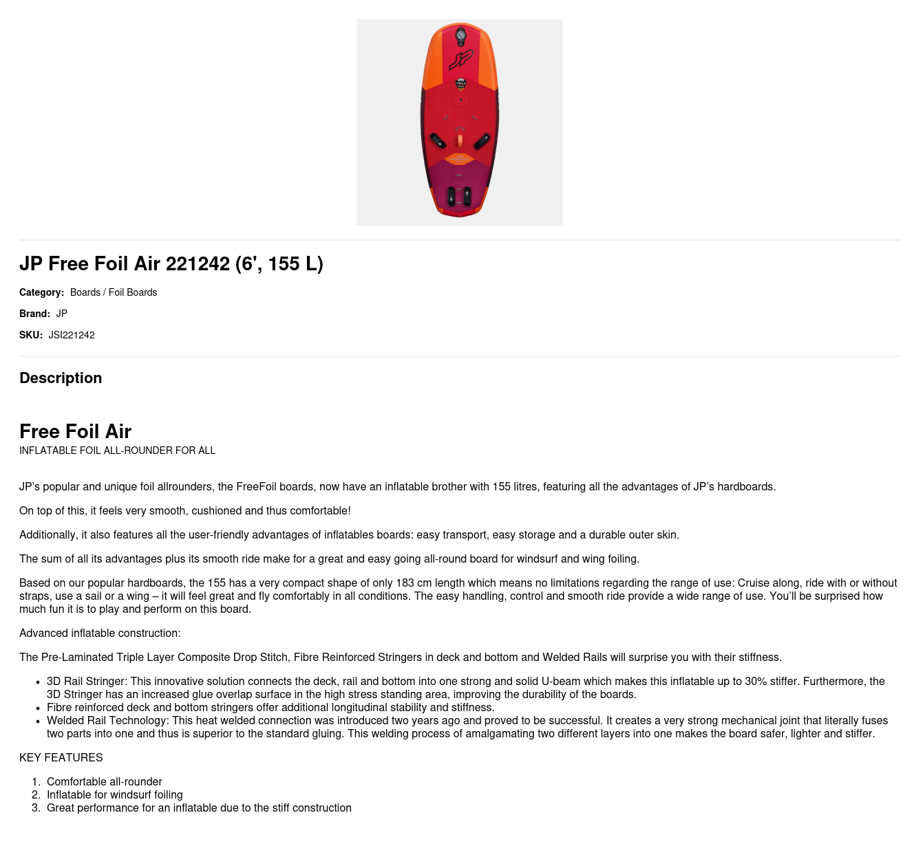 JP’s popular and unique foil allrounders, the FreeFoil boards, now have an inflatable brother with 155 litres, featuring all the advantages of JP’s hardboards.
