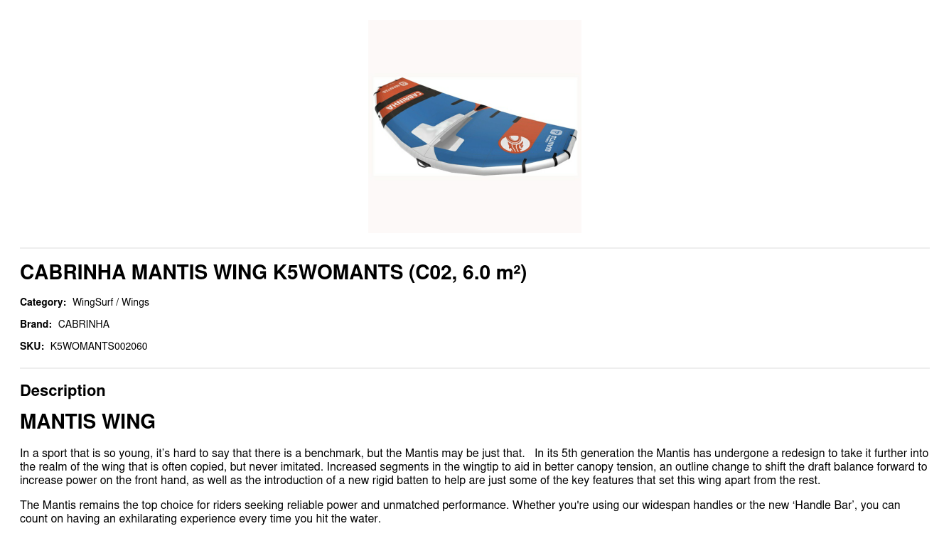 HOME / PRODUCTS / CABRINHA MANTIS WING K5WOMANTS
