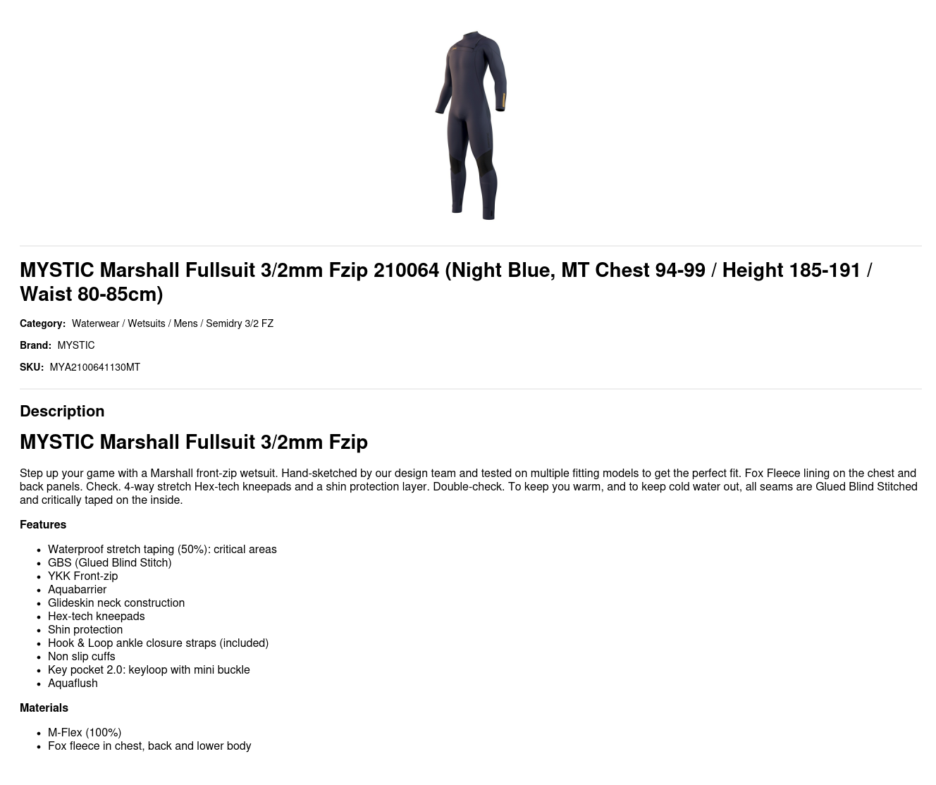 MYSTIC Marshall Fullsuit 3/2mm Fzip