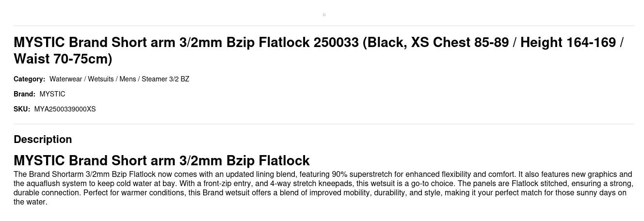 MYSTIC Brand Short arm 3/2mm Bzip Flatlock 250033