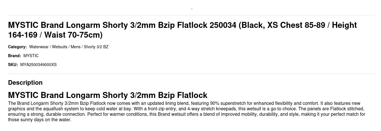 MYSTIC Brand Longarm Shorty 3/2mm Bzip Flatlock 250034