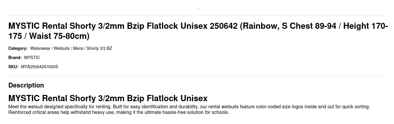 MYSTIC Rental Shorty 3/2mm Bzip Flatlock Unisex 250642