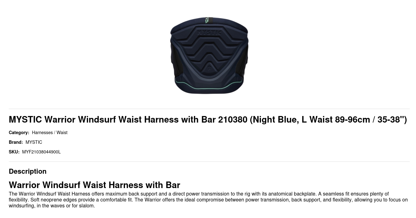 MYSTIC Warrior Windsurf Waist Harness with Bar 210380