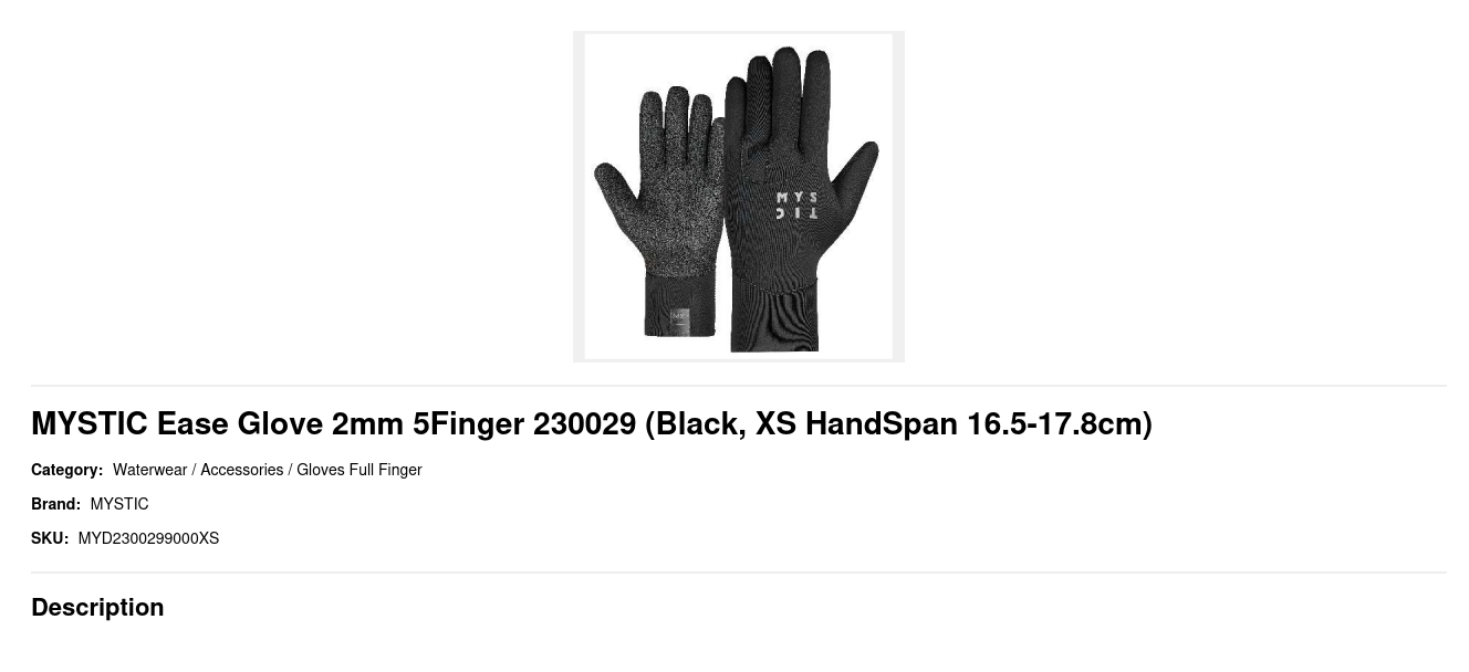 | Size | XS HandSpan 16.5-17.8cm, S HandSpan 17.8-19.1cm, M HandSpan 19.1-20.3cm, L HandSpan 20.3-21.6cm, XL HandSpan 21.6-22.9cm, XXL HandSpan 21.6-22.9cm |