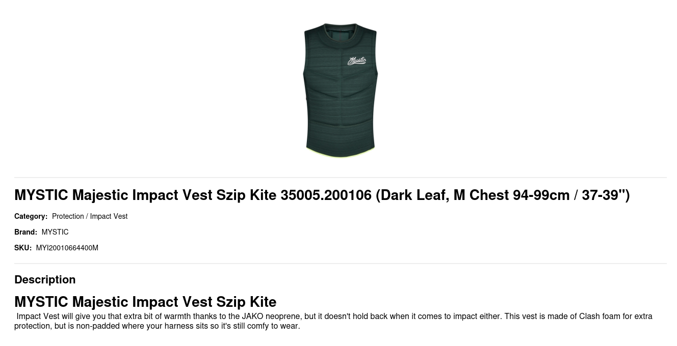 MYSTIC Majestic Impact Vest Szip Kite