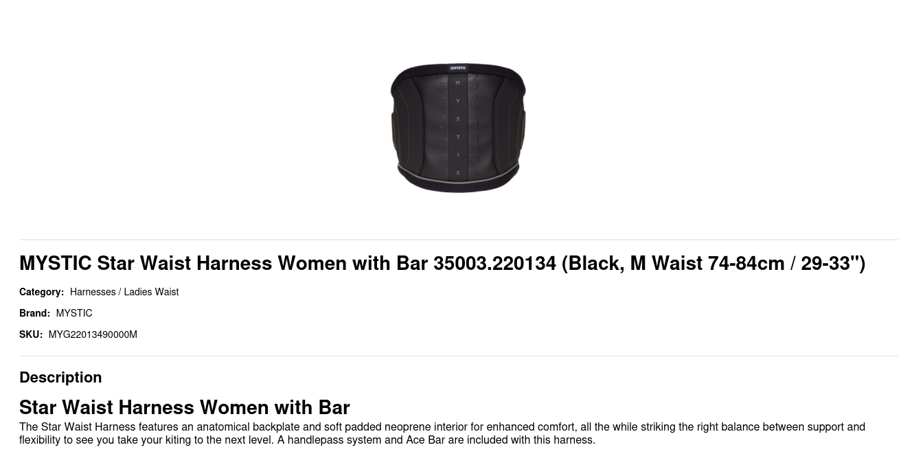 MYSTIC Star Waist Harness Women with Bar 35003.220134