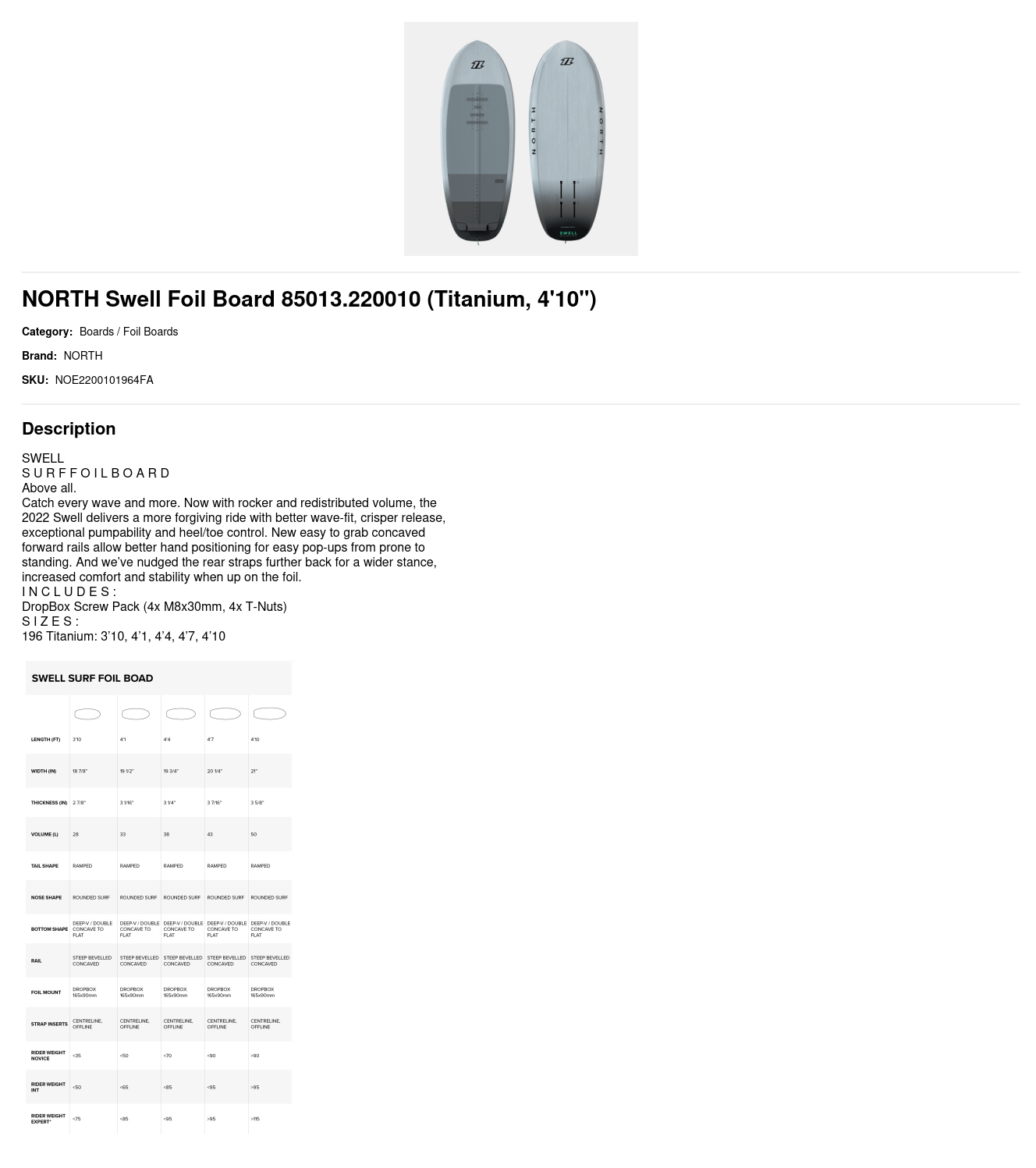 HOME / PRODUCTS / NORTH Swell Foil Board 85013.220010