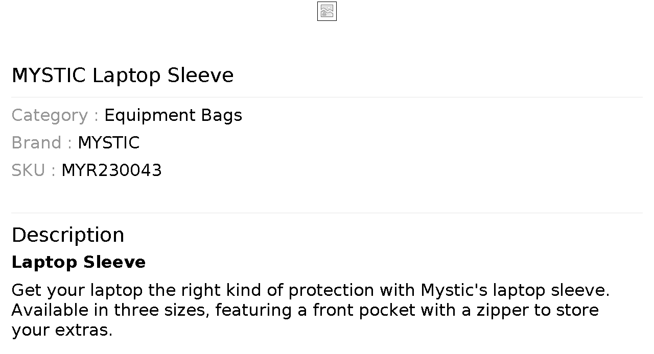 Get your laptop the right kind of protection with Mystic's laptop sleeve. Available in three sizes, featuring a front pocket with a zipper to store your extras.
