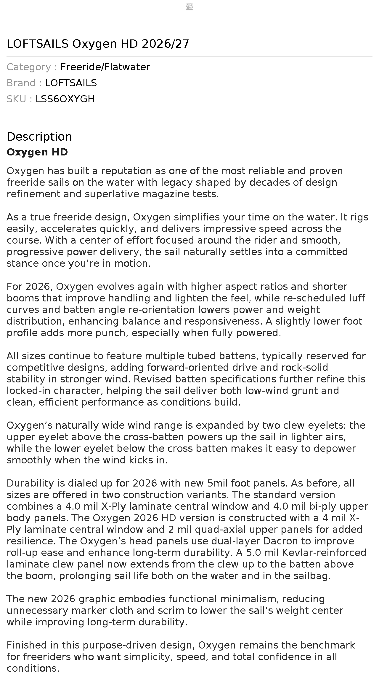 Oxygen has built a reputation as one of the most reliable and proven freeride sails on the water with legacy shaped by decades of design refinement and superlative magazine tests.