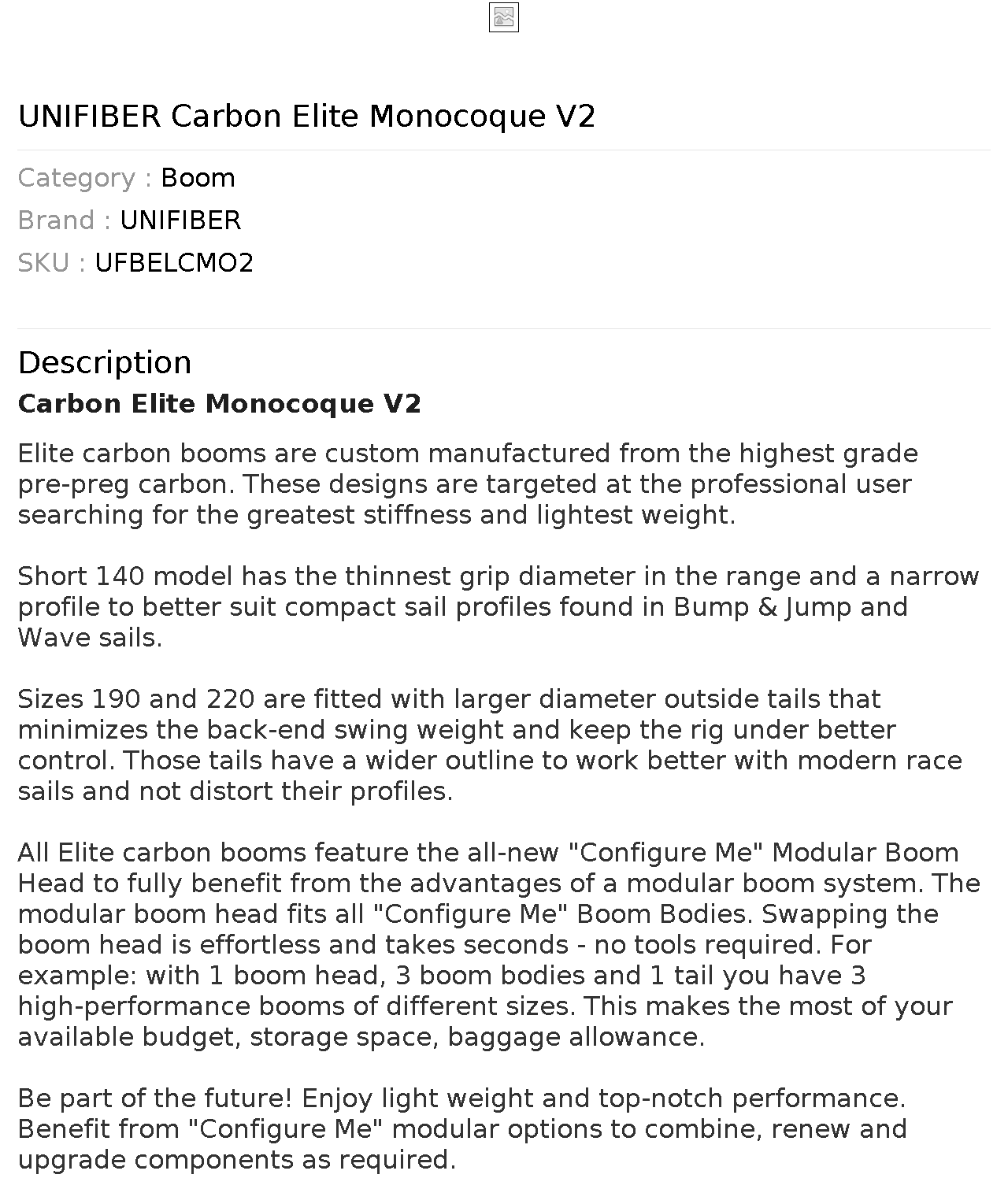 All Elite carbon booms feature the all-new "Configure Me" Modular Boom Head to fully benefit from the advantages of a modular boom system. The modular boom head fits all "Configure Me" Boom Bodies. Swapping the boom head is effortless and takes seconds - no tools required. For example: with 1 boom head, 3 boom bodies and 1 tail you have 3 high-performance booms of different sizes. This makes the most of your available budget, storage space, baggage allowance.