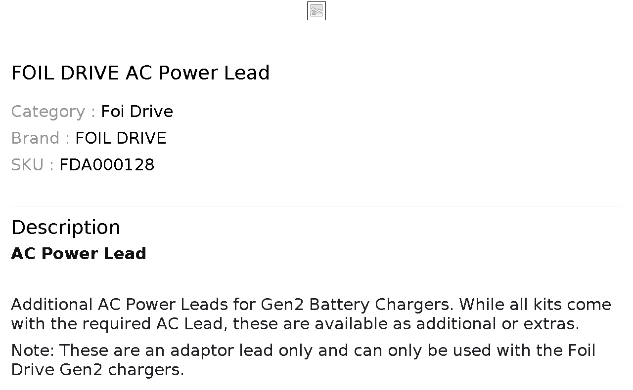 Note: These are an adaptor lead only and can only be used with the Foil Drive Gen2 chargers.