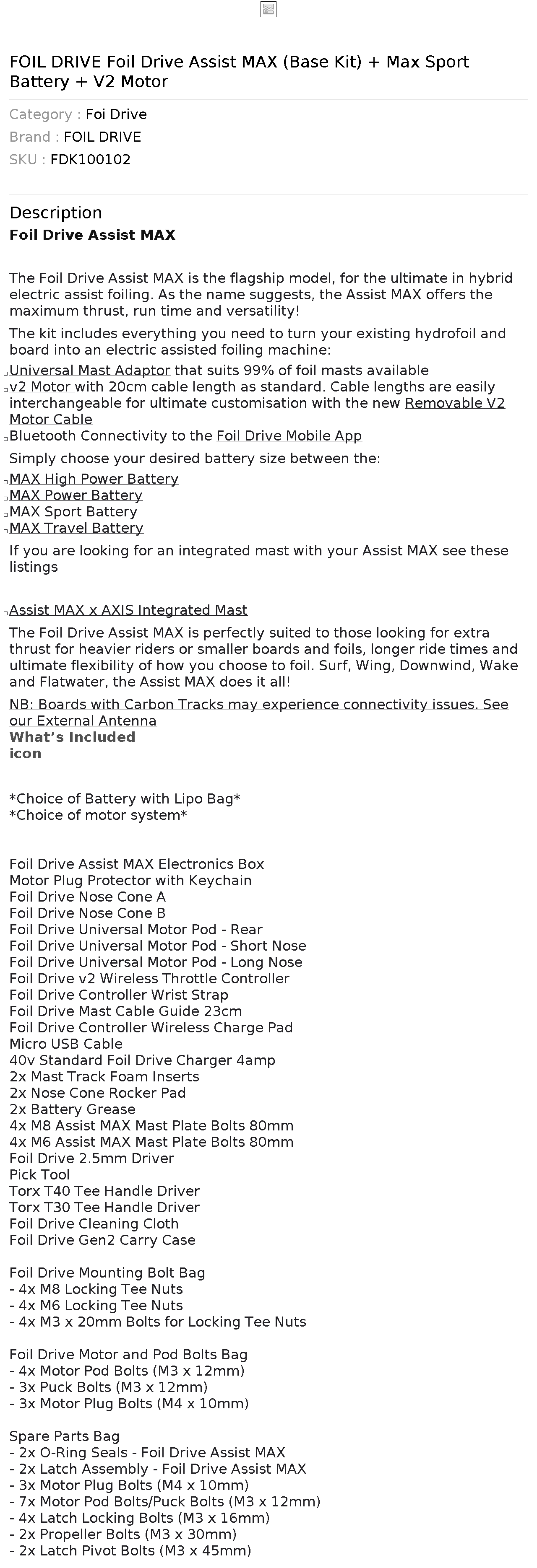 The Foil Drive Assist MAX is perfectly suited to those looking for extra thrust for heavier riders or smaller boards and foils, longer ride times and ultimate flexibility of how you choose to foil. Surf, Wing, Downwind, Wake and Flatwater, the Assist MAX does it all!