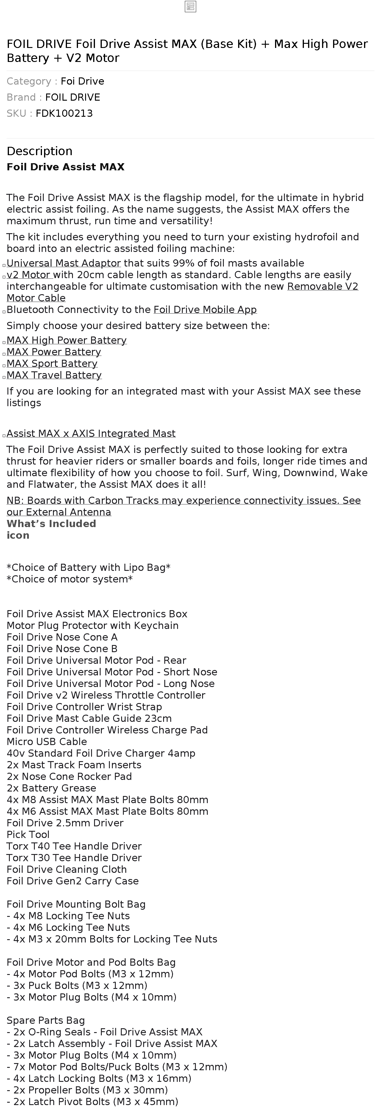 The Foil Drive Assist MAX is perfectly suited to those looking for extra thrust for heavier riders or smaller boards and foils, longer ride times and ultimate flexibility of how you choose to foil. Surf, Wing, Downwind, Wake and Flatwater, the Assist MAX does it all!
