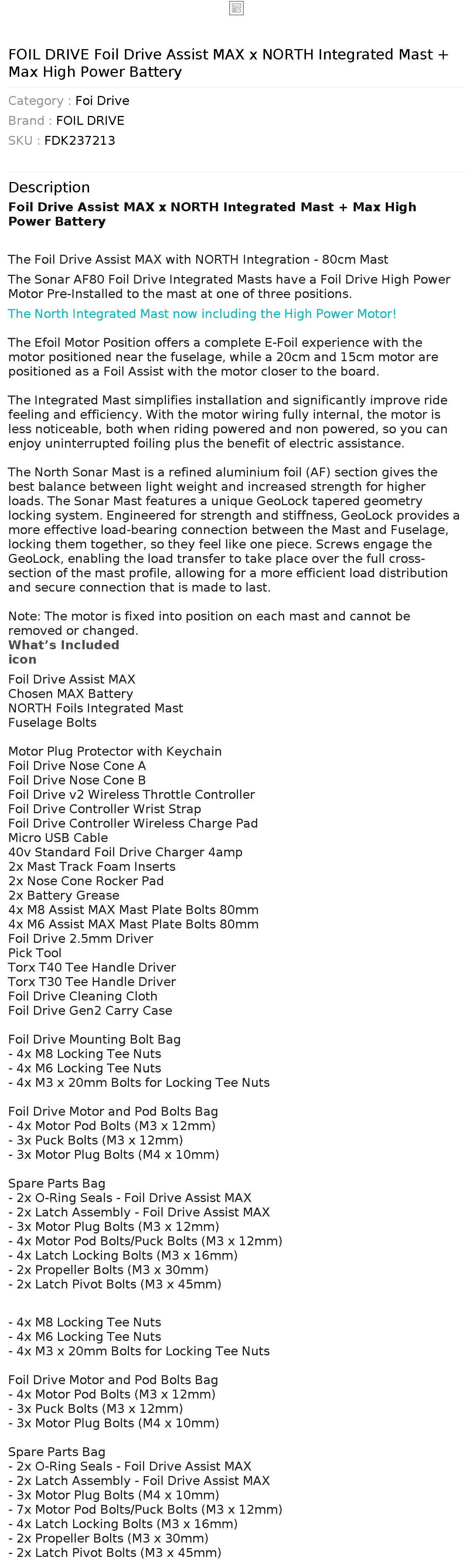 The Foil Drive Assist MAX with NORTH Integration - 80cm Mast