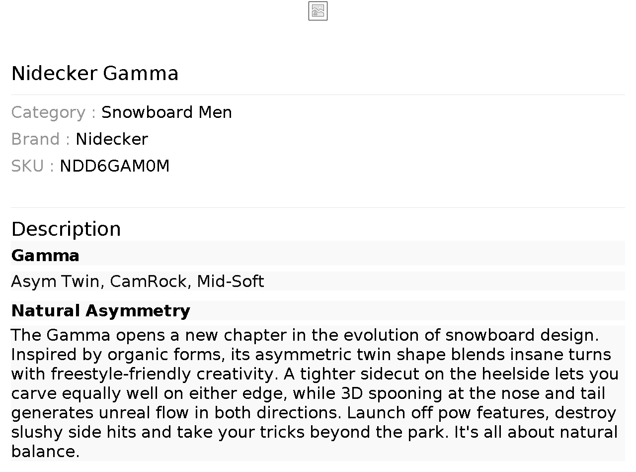 The Gamma opens a new chapter in the evolution of snowboard design. Inspired by organic forms, its asymmetric twin shape blends insane turns with freestyle-friendly creativity. A tighter sidecut on the heelside lets you carve equally well on either edge, while 3D spooning at the nose and tail generates unreal flow in both directions. Launch off pow features, destroy slushy side hits and take your tricks beyond the park. It's all about natural balance.