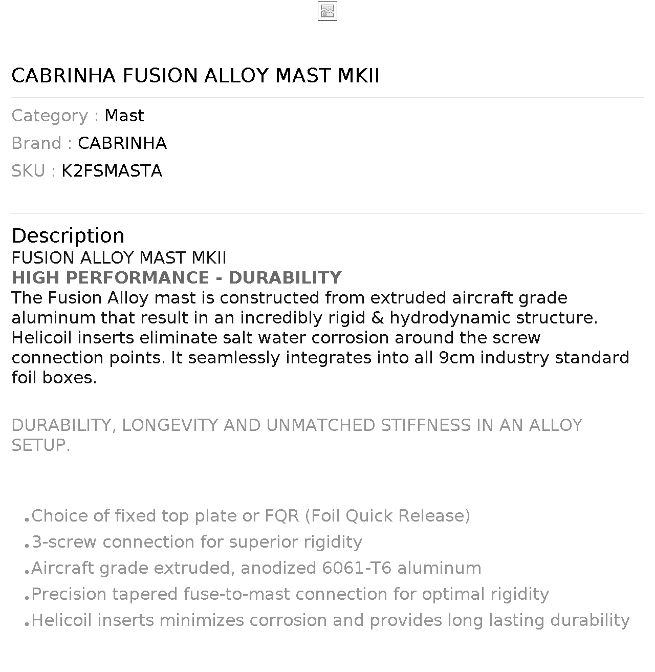 - Precision tapered fuse-to-mast connection for optimal rigidity