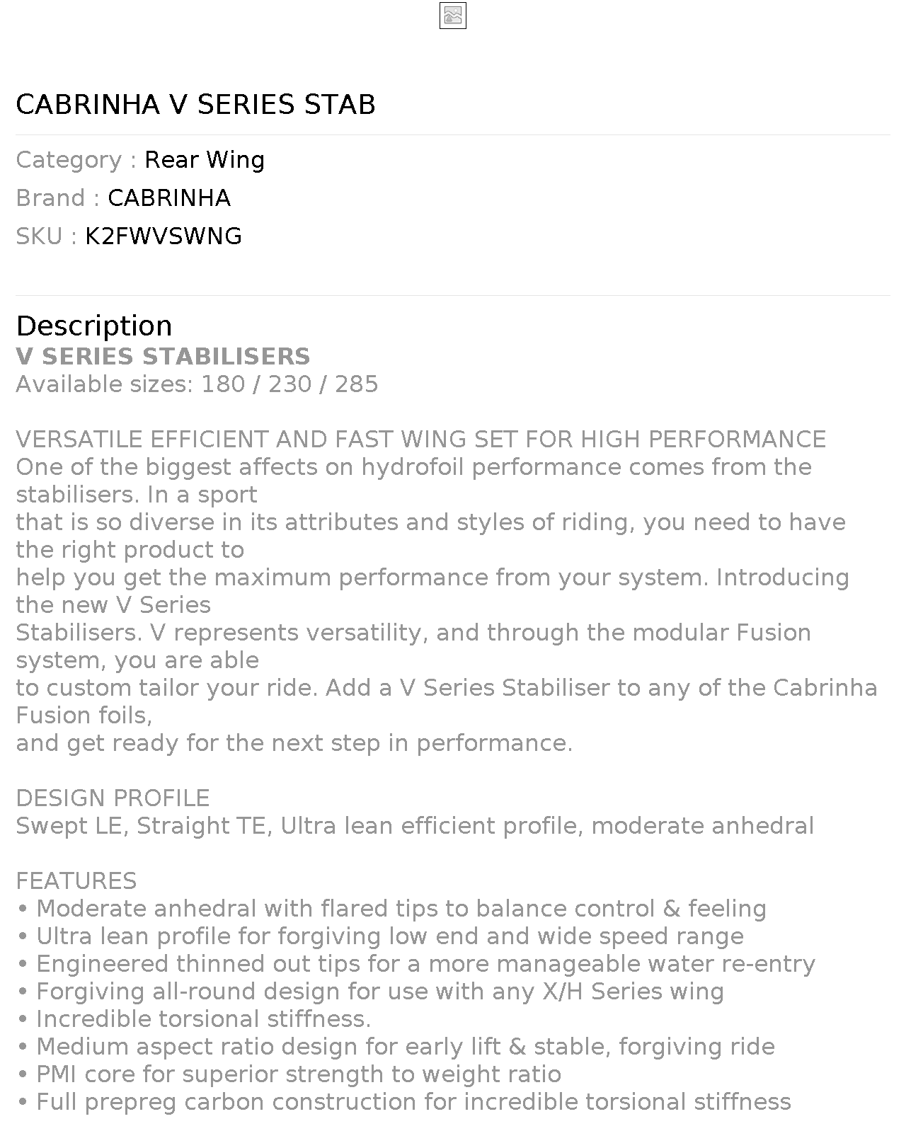 to custom tailor your ride. Add a V Series Stabiliser to any of the Cabrinha Fusion foils,