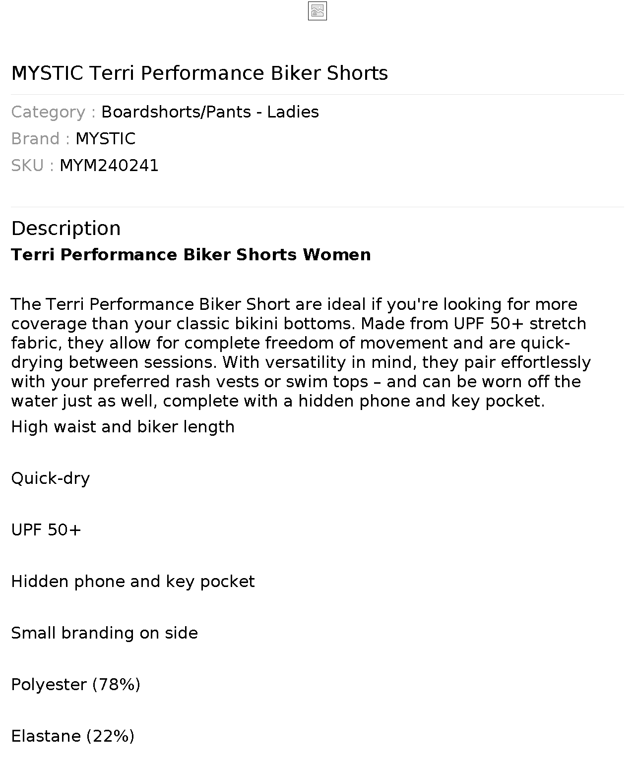 The Terri Performance Biker Short are ideal if you're looking for more coverage than your classic bikini bottoms. Made from UPF 50+ stretch fabric, they allow for complete freedom of movement and are quick-drying between sessions. With versatility in mind, they pair effortlessly with your preferred rash vests or swim tops – and can be worn off the water just as well, complete with a hidden phone and key pocket.