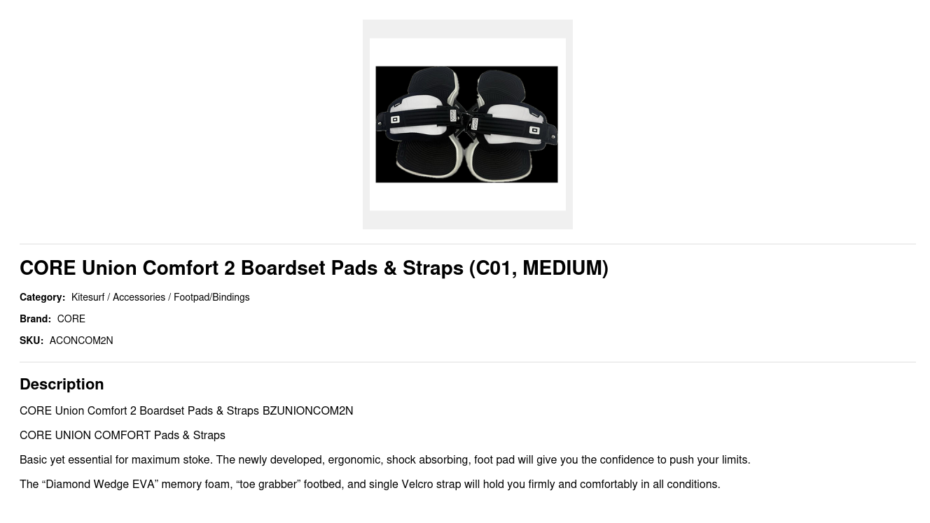 CORE Union Comfort 2 Boardset Pads & Straps BZUNIONCOM2N