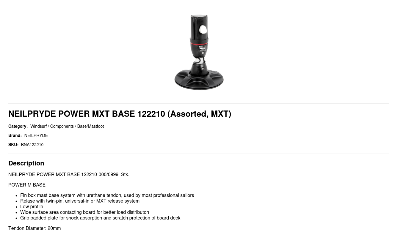 - Fin box mast base system with urethane tendon, used by most professional sailors