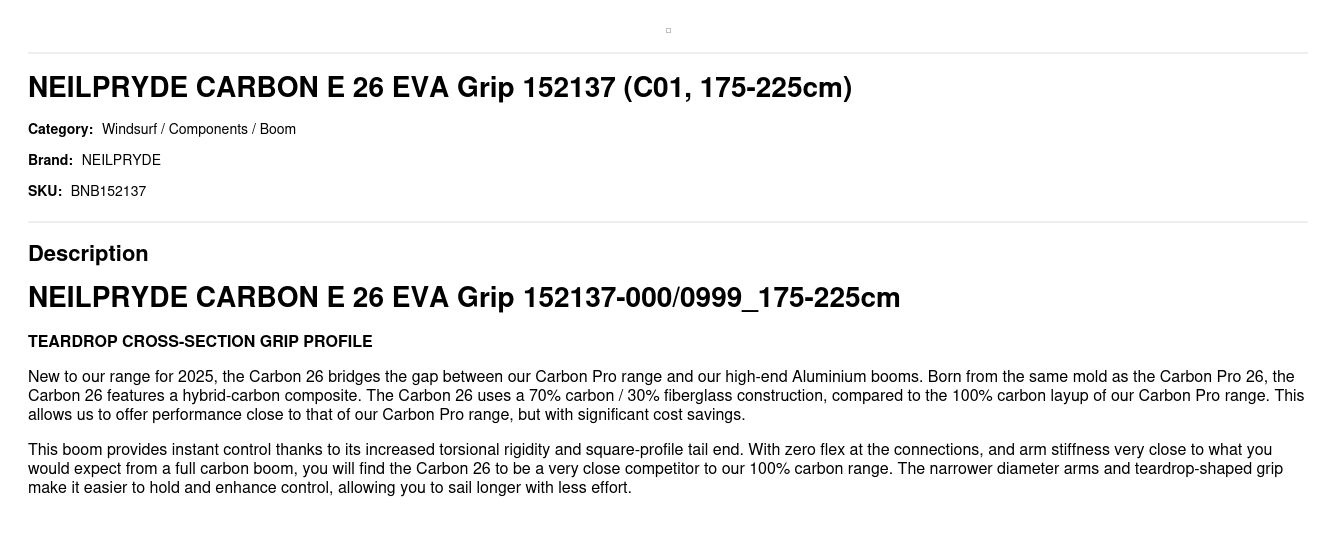 This boom provides instant control thanks to its increased torsional rigidity and square-profile tail end. With zero flex at the connections, and arm stiffness very close to what you would expect from a full carbon boom, you will find the Carbon 26 to be a very close competitor to our 100% carbon range. The narrower diameter arms and teardrop-shaped grip make it easier to hold and enhance control, allowing you to sail longer with less effort.