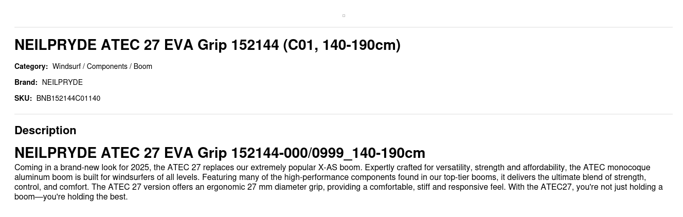 Coming in a brand-new look for 2025, the ATEC 27 replaces our extremely popular X-AS boom. Expertly crafted for versatility, strength and affordability, the ATEC monocoque aluminum boom is built for windsurfers of all levels. Featuring many of the high-performance components found in our top-tier booms, it delivers the ultimate blend of strength, control, and comfort. The ATEC 27 version offers an ergonomic 27 mm diameter grip, providing a comfortable, stiff and responsive feel. With the ATEC27, you're not just holding a boom—you're holding the best.