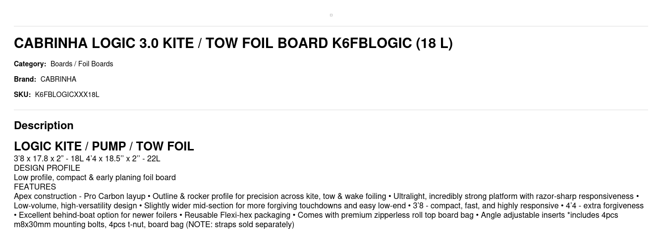 CABRINHA LOGIC 3.0 KITE / TOW FOIL BOARD K6FBLOGIC