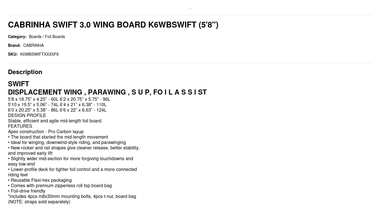 HOME / PRODUCTS / CABRINHA SWIFT 3.0 WING BOARD K6WBSWIFT