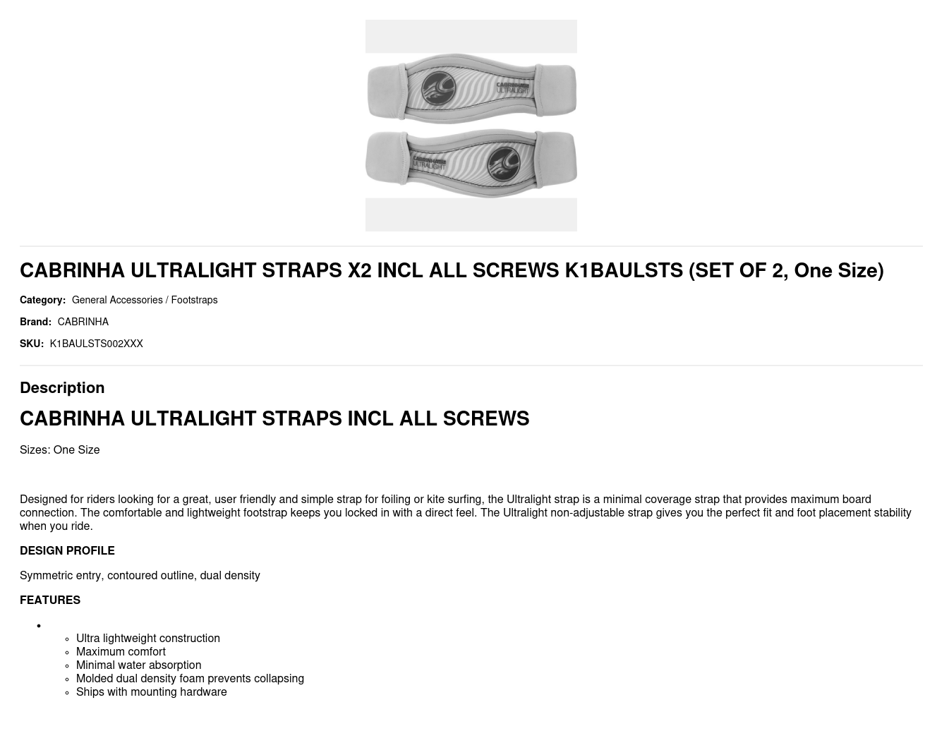 CABRINHA ULTRALIGHT STRAPS X2 INCL ALL SCREWS K1BAULSTS