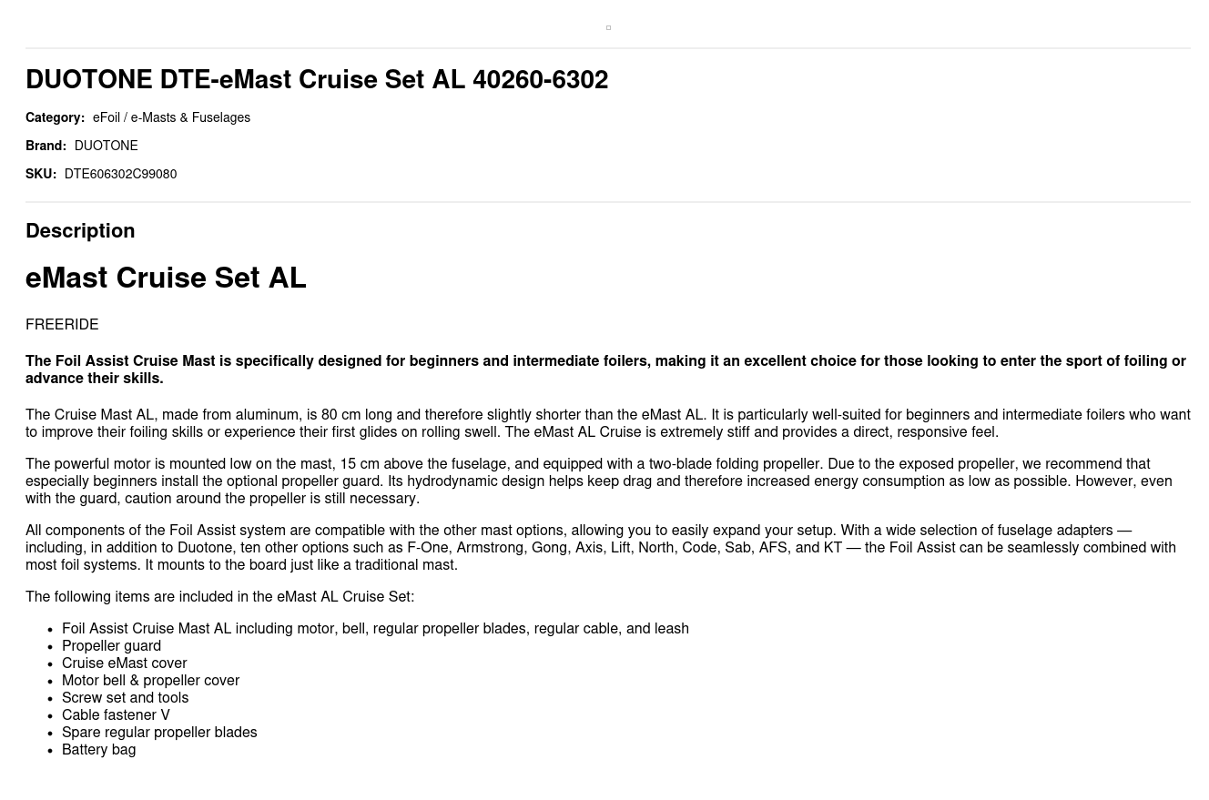 HOME / PRODUCTS / DUOTONE DTE-eMast Cruise Set AL 40260-6302