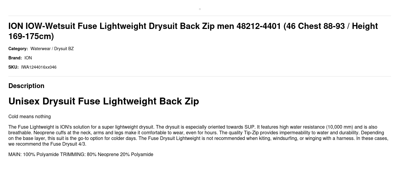 ION IOW-Wetsuit Fuse Lightweight Drysuit Back Zip men 48212-4401