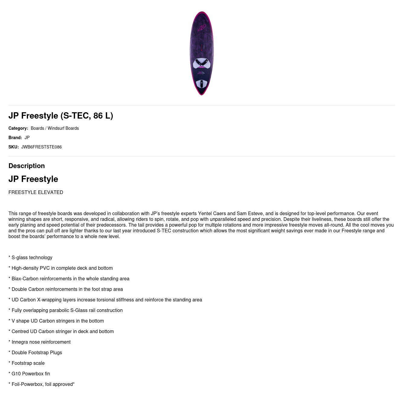 This range of freestyle boards was developed in collaboration with JP’s freestyle experts Yentel Caers and Sam Esteve, and is designed for top-level performance. Our event winning shapes are short, responsive, and radical, allowing riders to spin, rotate, and pop with unparalleled speed and precision. Despite their liveliness, these boards still offer the early planing and speed potential of their predecessors. The tail provides a powerful pop for multiple rotations and more impressive freestyle moves all-round. All the cool moves you and the pros can pull off are lighter thanks to our last year introduced S-TEC construction which allows the most significant weight savings ever made in our Freestyle range and boost the boards’ performance to a whole new level.