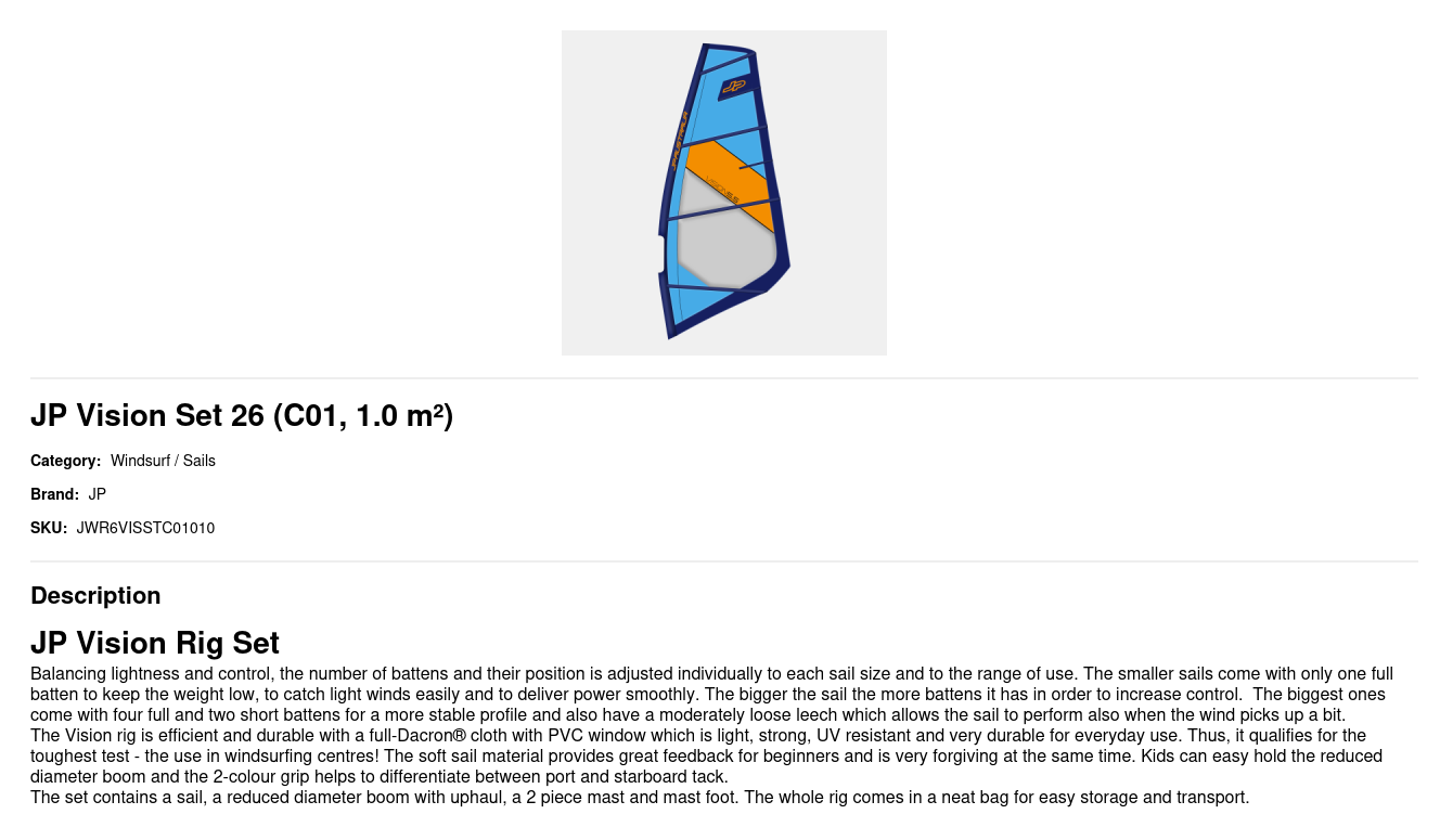 The Vision rig is efficient and durable with a full-Dacron® cloth with PVC window which is light, strong, UV resistant and very durable for everyday use. Thus, it qualifies for the toughest test - the use in windsurfing centres! The soft sail material provides great feedback for beginners and is very forgiving at the same time. Kids can easy hold the reduced diameter boom and the 2-colour grip helps to differentiate between port and starboard tack.