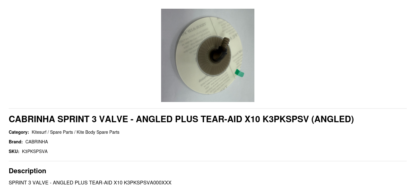 CABRINHA SPRINT 3 VALVE - ANGLED PLUS TEAR-AID X10 K3PKSPSV
