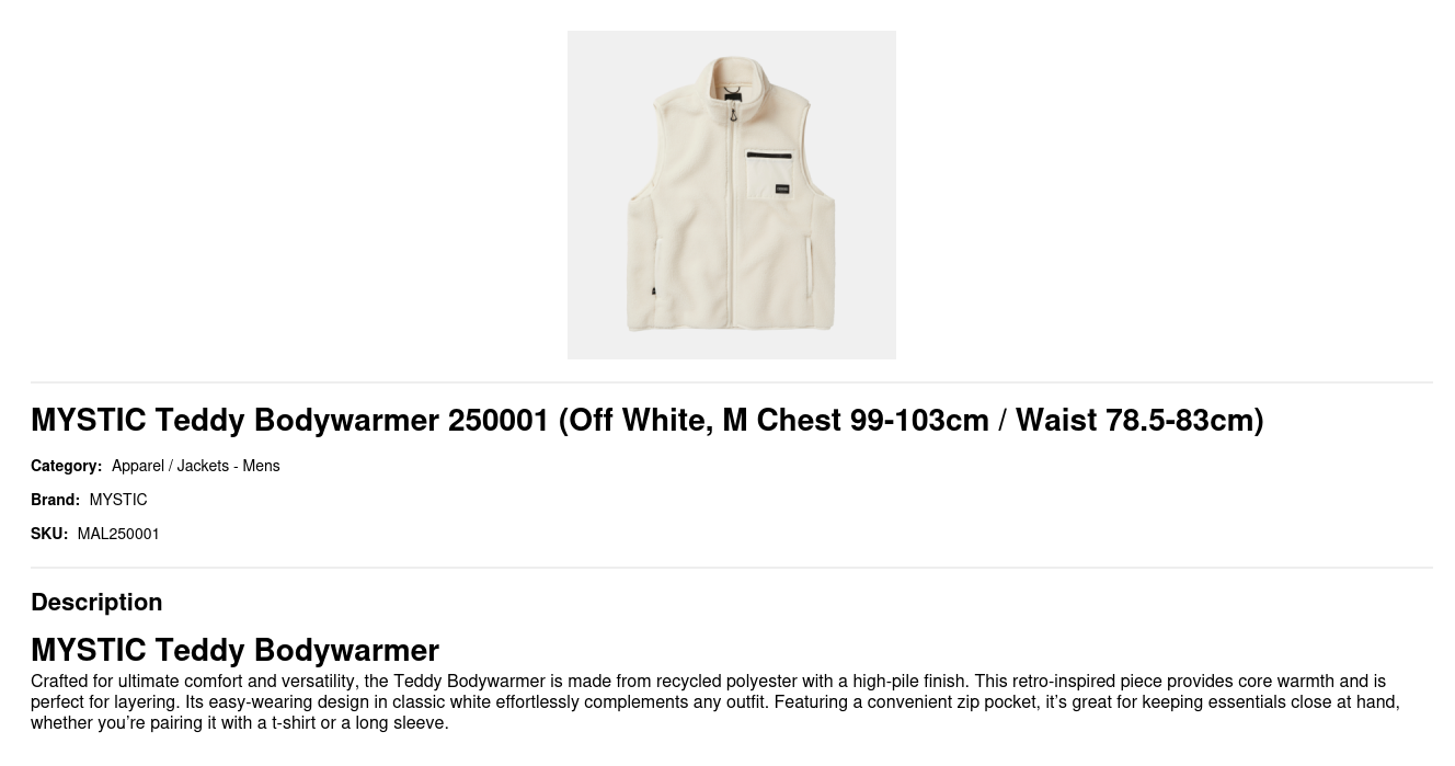 | Size | M Chest 99-103cm / Waist 78.5-83cm |