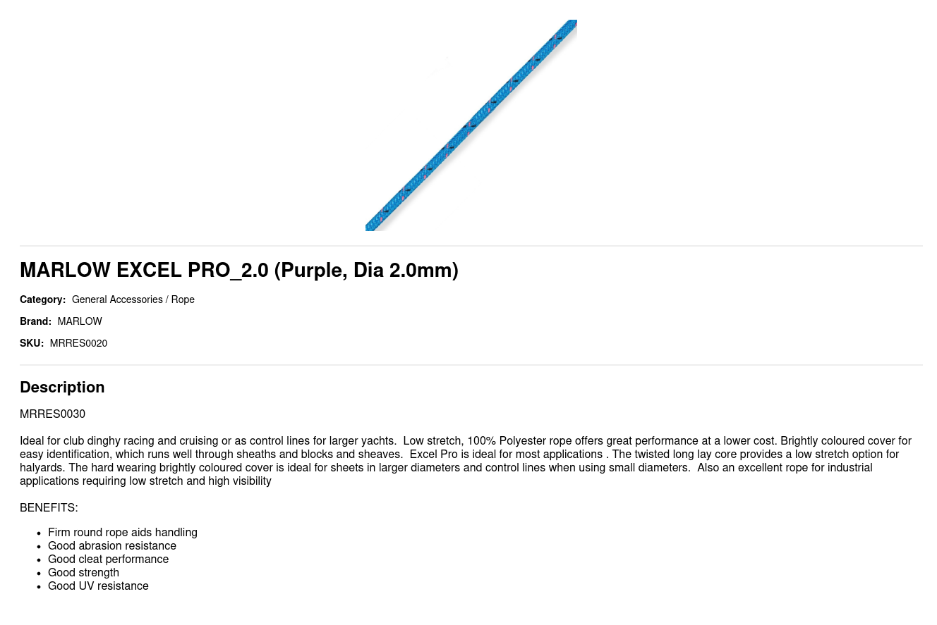 Ideal for club dinghy racing and cruising or as control lines for larger yachts. Low stretch, 100% Polyester rope offers great performance at a lower cost. Brightly coloured cover for easy identification, which runs well through sheaths and blocks and sheaves. Excel Pro is ideal for most applications . The twisted long lay core provides a low stretch option for halyards. The hard wearing brightly coloured cover is ideal for sheets in larger diameters and control lines when using small diameters. Also an excellent rope for industrial applications requiring low stretch and high visibility