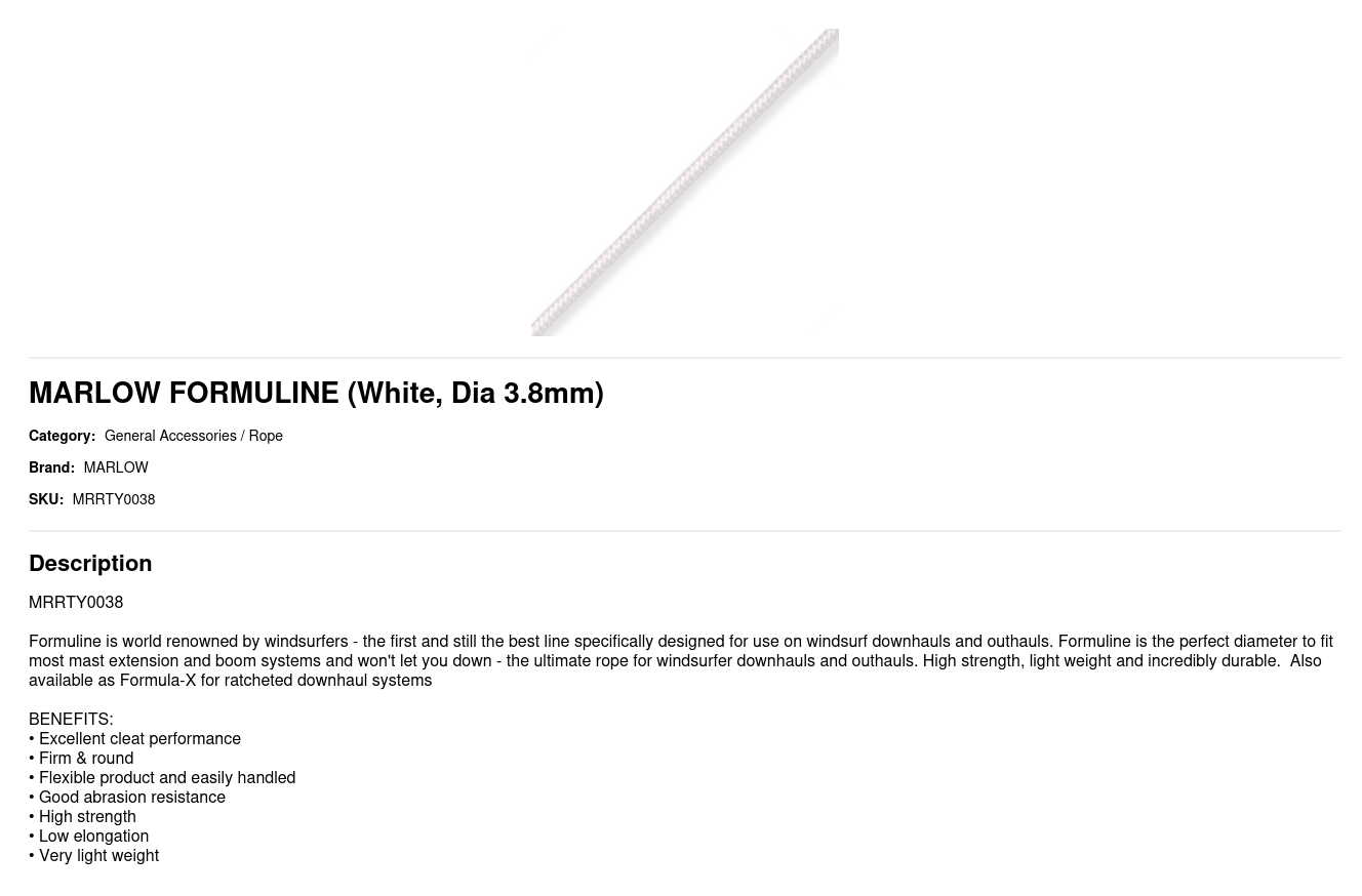 Formuline is world renowned by windsurfers - the first and still the best line specifically designed for use on windsurf downhauls and outhauls. Formuline is the perfect diameter to fit most mast extension and boom systems and won't let you down - the ultimate rope for windsurfer downhauls and outhauls. High strength, light weight and incredibly durable. Also available as Formula-X for ratcheted downhaul systems