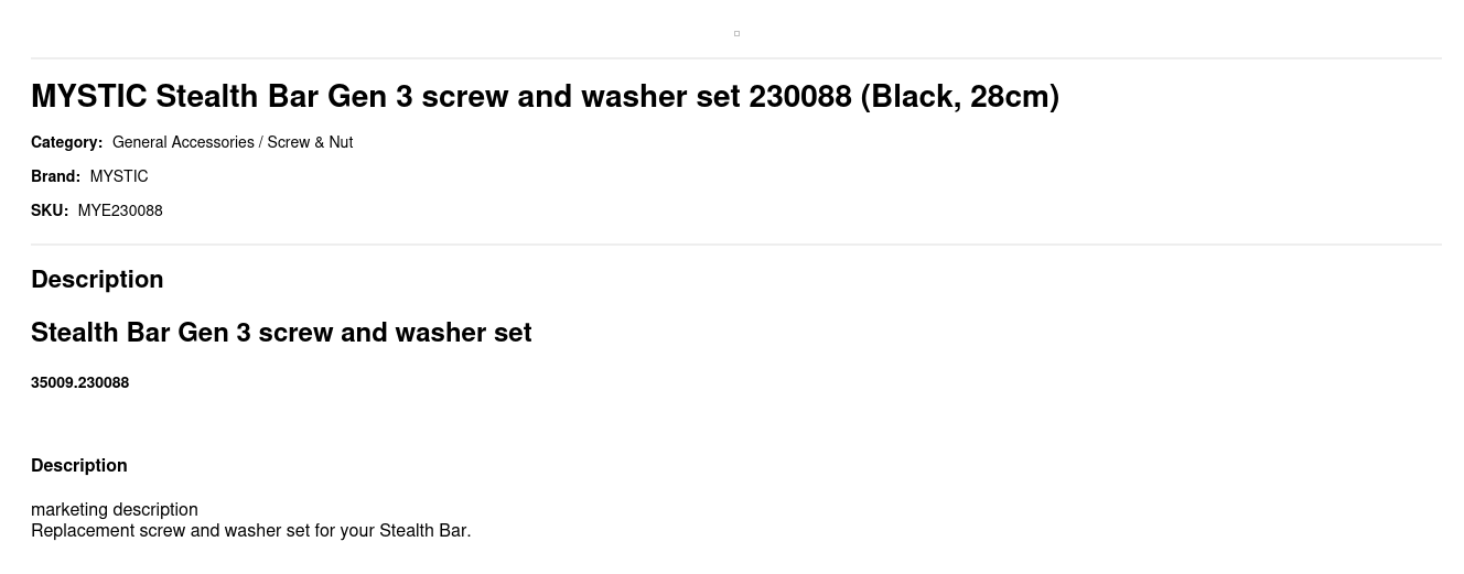 MYSTIC Stealth Bar Gen 3 screw and washer set 230088