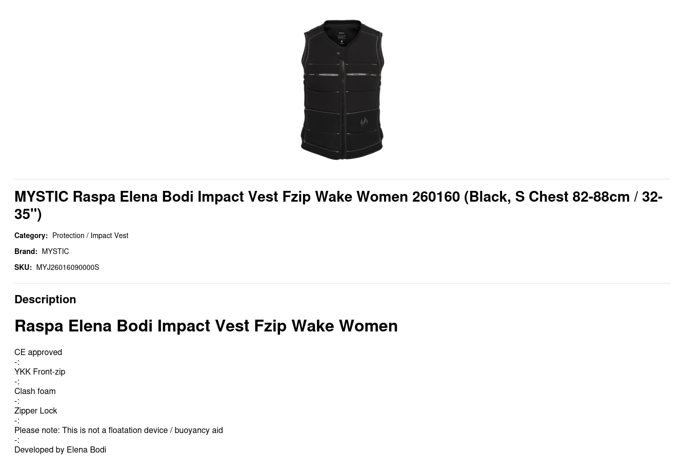 MYSTIC Raspa Elena Bodi Impact Vest Fzip Wake Women 260160