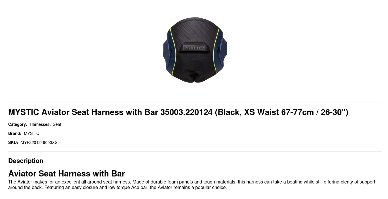 MYSTIC Aviator Seat Harness with Bar 35003.220124
