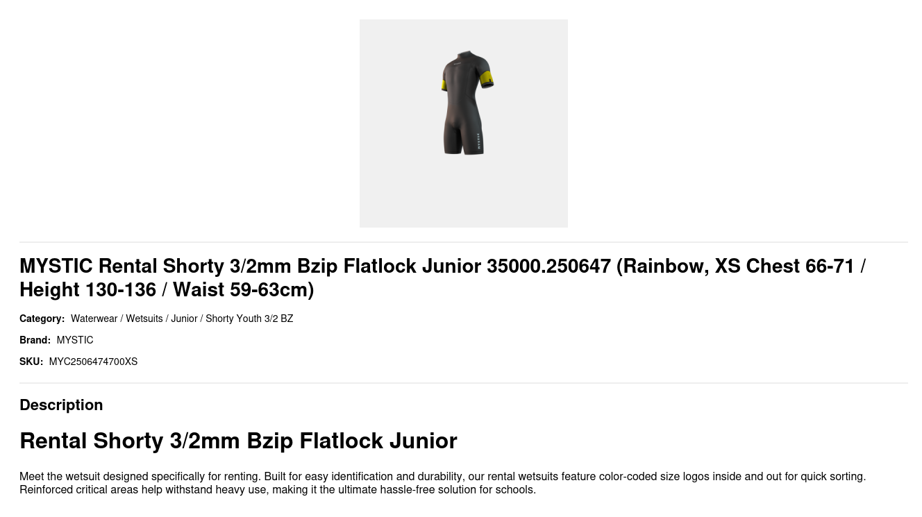 MYSTIC Rental Shorty 3/2mm Bzip Flatlock Junior 35000.250647
