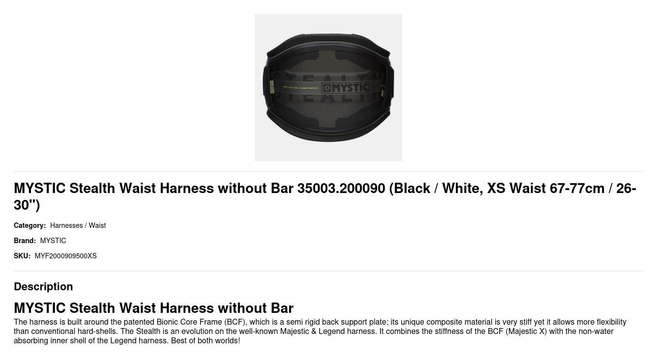 MYSTIC Stealth Waist Harness without Bar 35003.200090